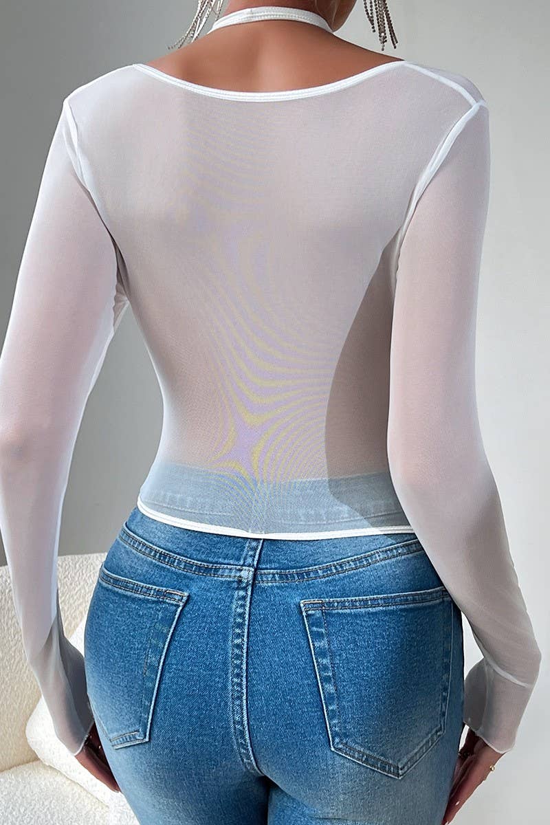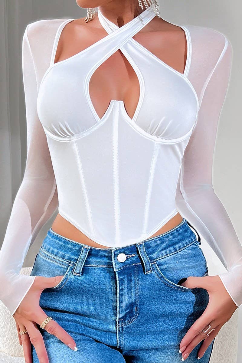 CROSSOVER HALTER NECK LONG SLEEVE TUNIC TOP
