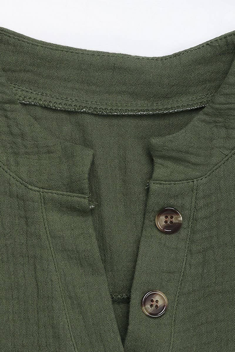 BUTTON V-NECK SOLID COLOR CASUAL PULLOVER SHIRT