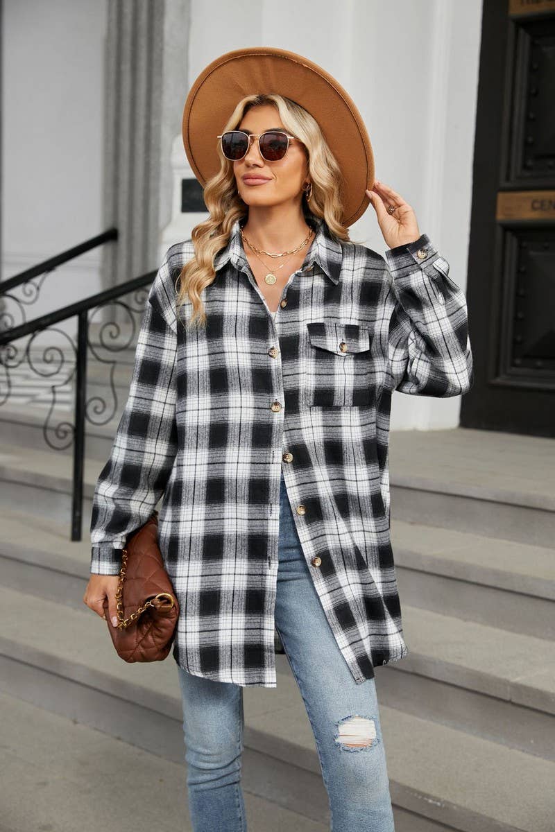 AUTUMN AND WINTER STRIPED PLAID BUTTON-DOWN SHIRT