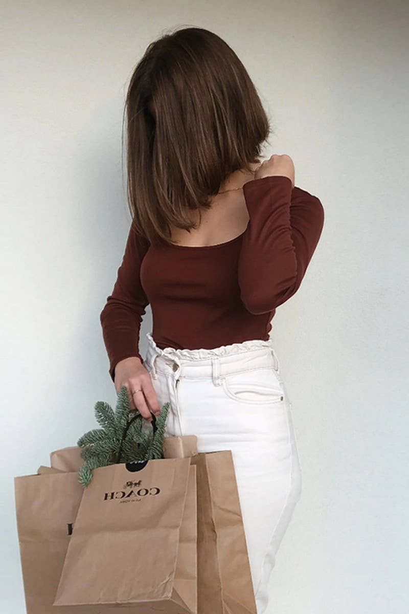 LONG-SLEEVED SQUARE NECK BELLY-BARING TOP