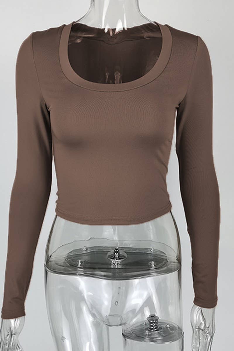 SLIM FIT U NECK LONG SLEEVE BOTTOMING TOP