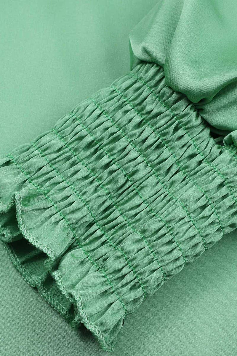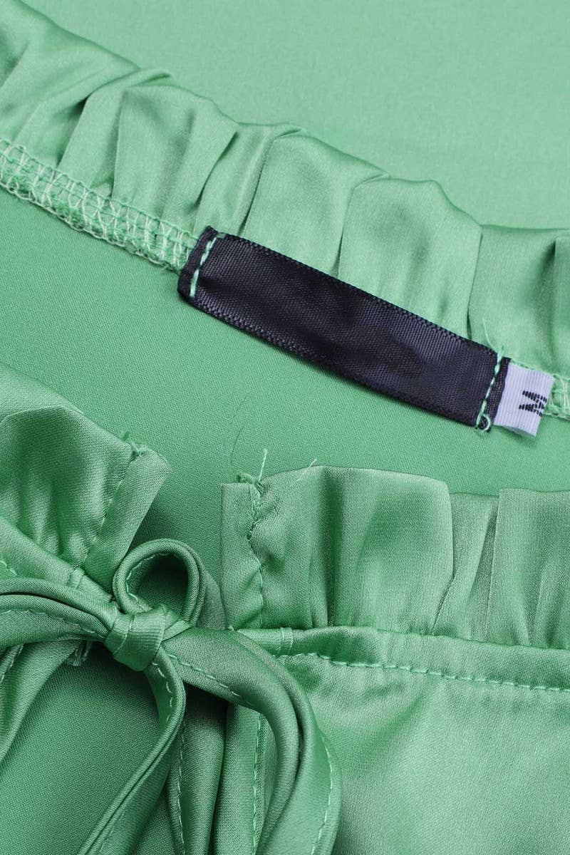 SOLID COLOR ROUND NECK SLEEVE TIE WAIST SATIN TOP