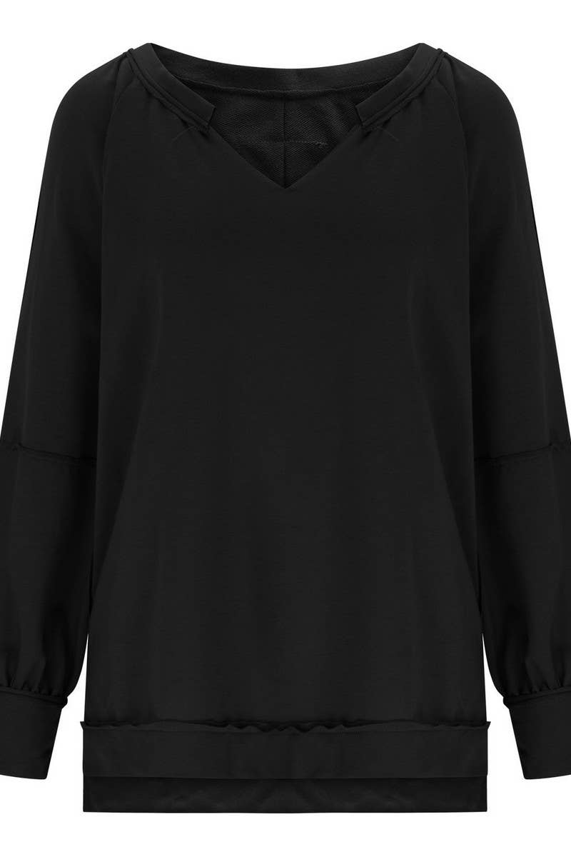 LOOSE SOLID V-NECK ASYMMETRICAL LONG SLEEVE TEE