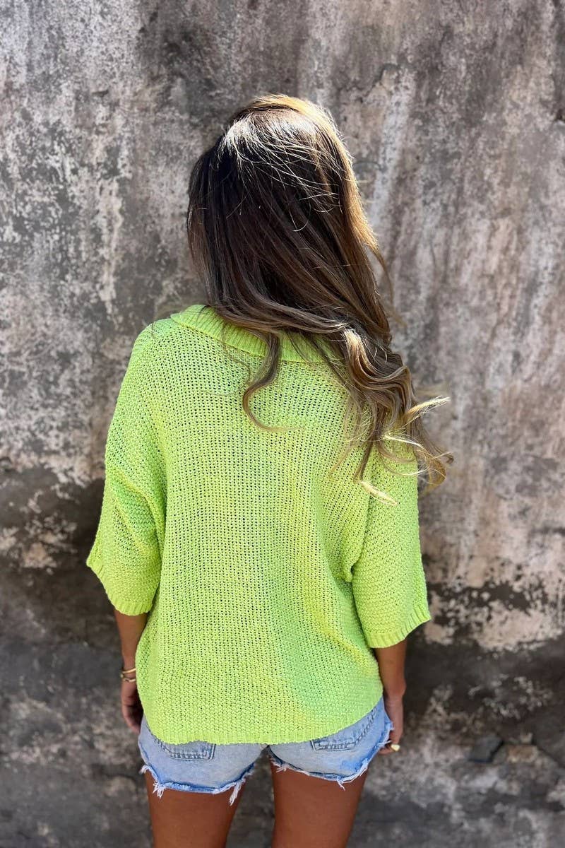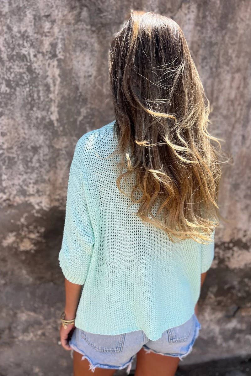 SOLID V-NECK COLLAR KNIT BASIC TOP