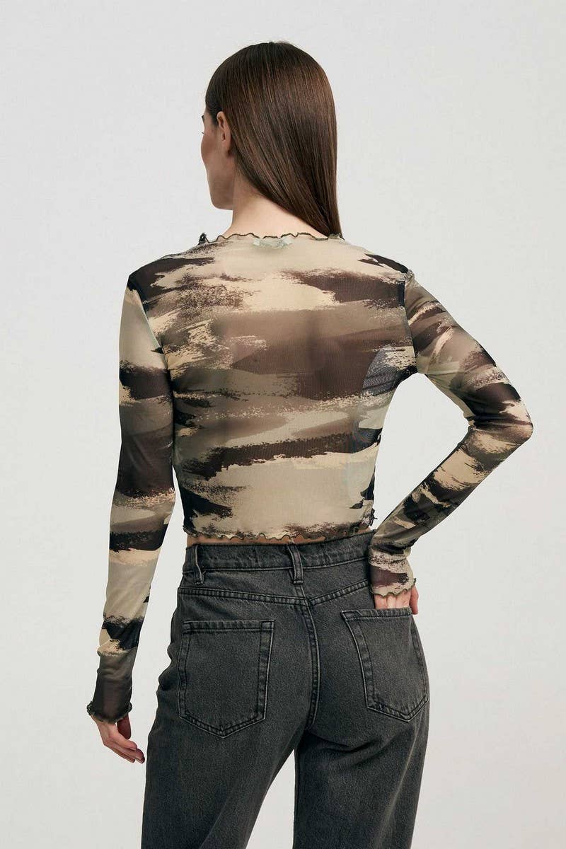 SEXY LEOPARD MESH PRINT SLIM FIT TEE TOP