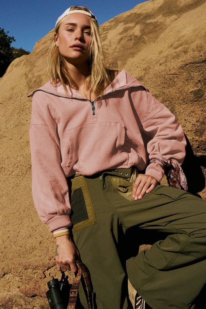 CASUAL ZIPPER DRAWSTRING LONG SLEEVE TOP