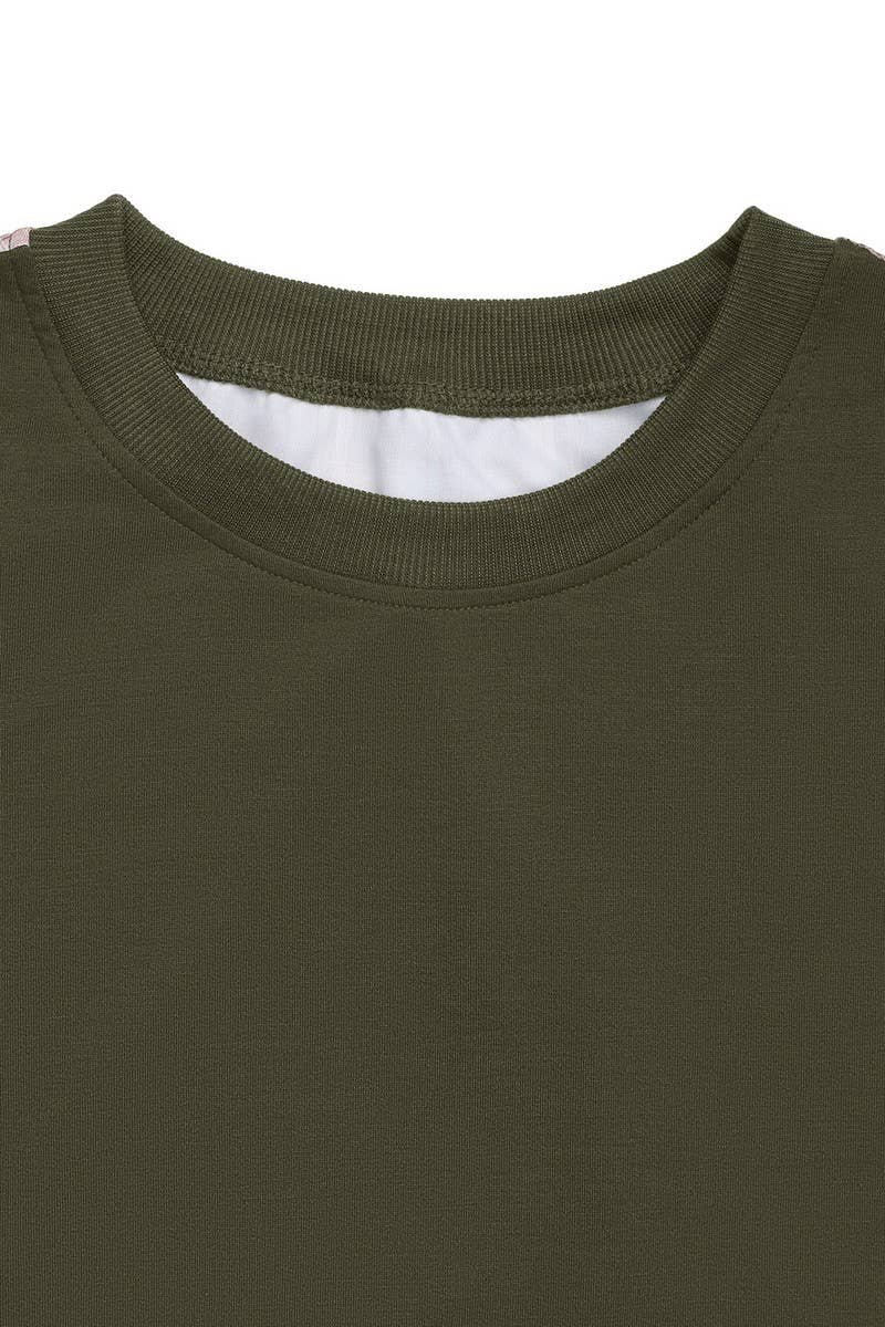PLAID PATCHWORK LIGHTWEIGHT CREWNECK SWEATSHIRT