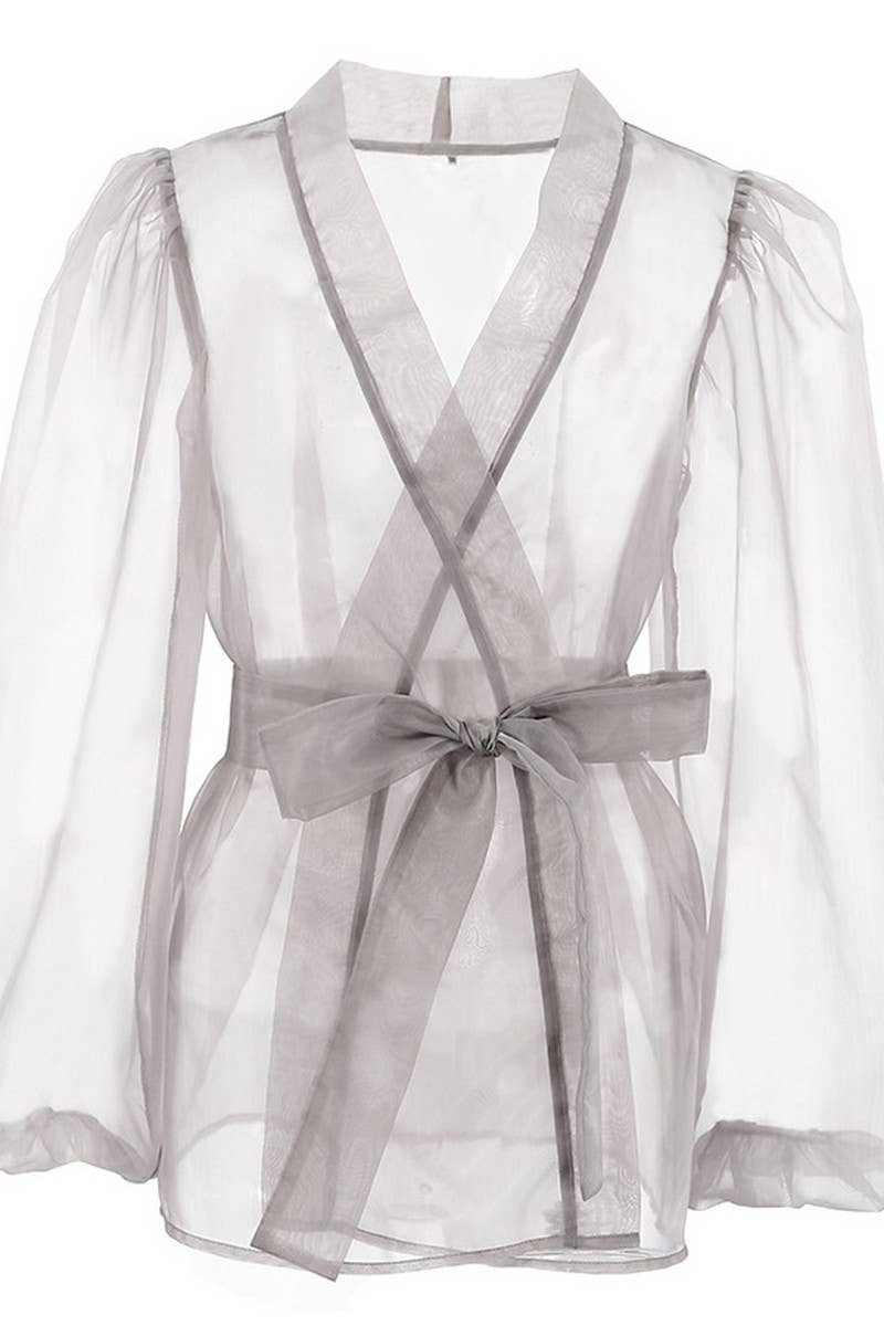 SHEER MESH LONG SLEEVE SHIRT BLOUSE