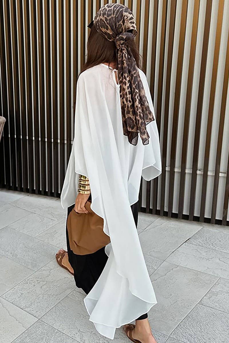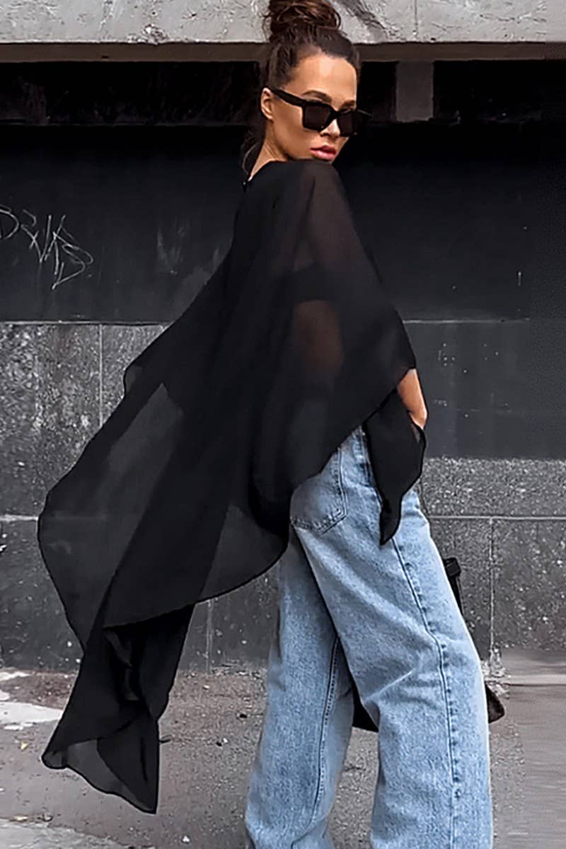 SOLID COLOR SEE-THROUGH LOOSE LONG-SLEEVED TOP