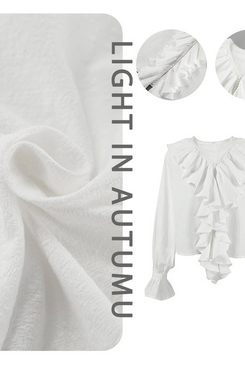 SOLID COLOR DROPPED SHOULDER SLEEVE LACE SHIRT