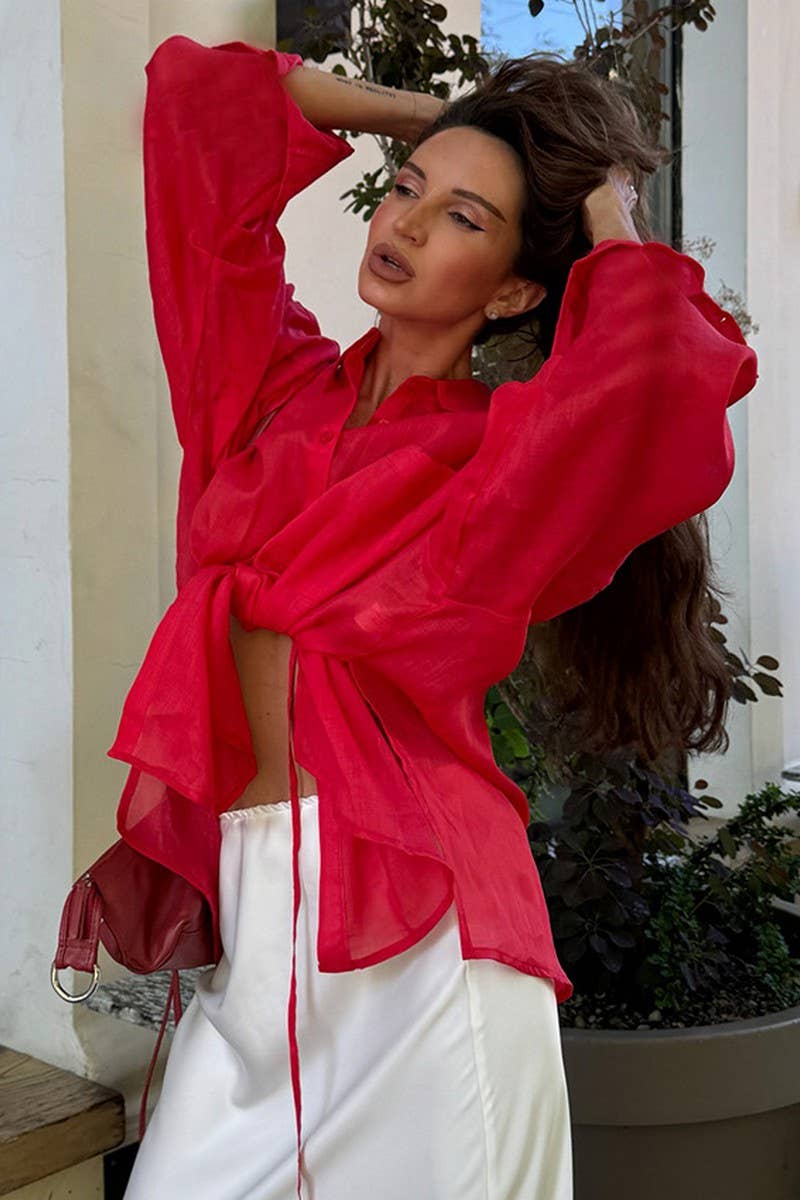 SEMI-TRANSPARENT LONG-SLEEVED TENCEL SHIRT