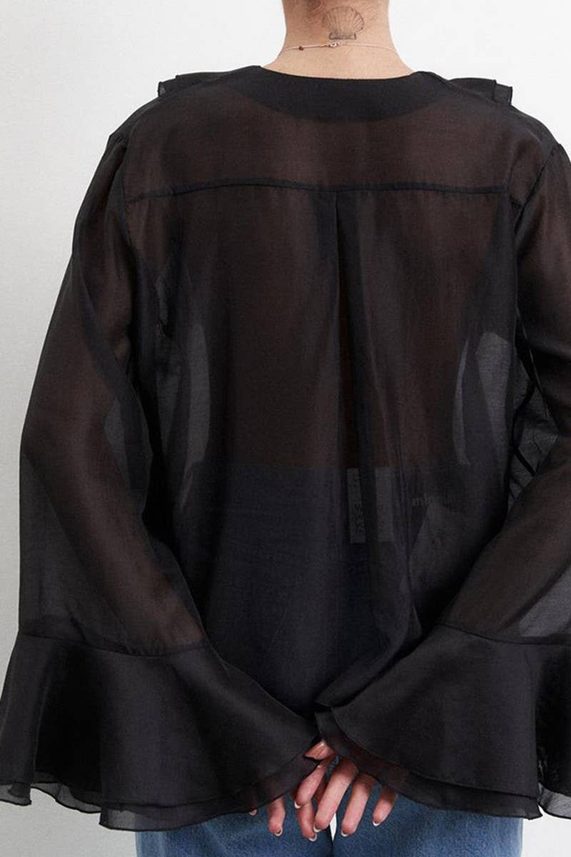 SOLID COLOR V-NECK RUFFLED LACE-UP SHIRT