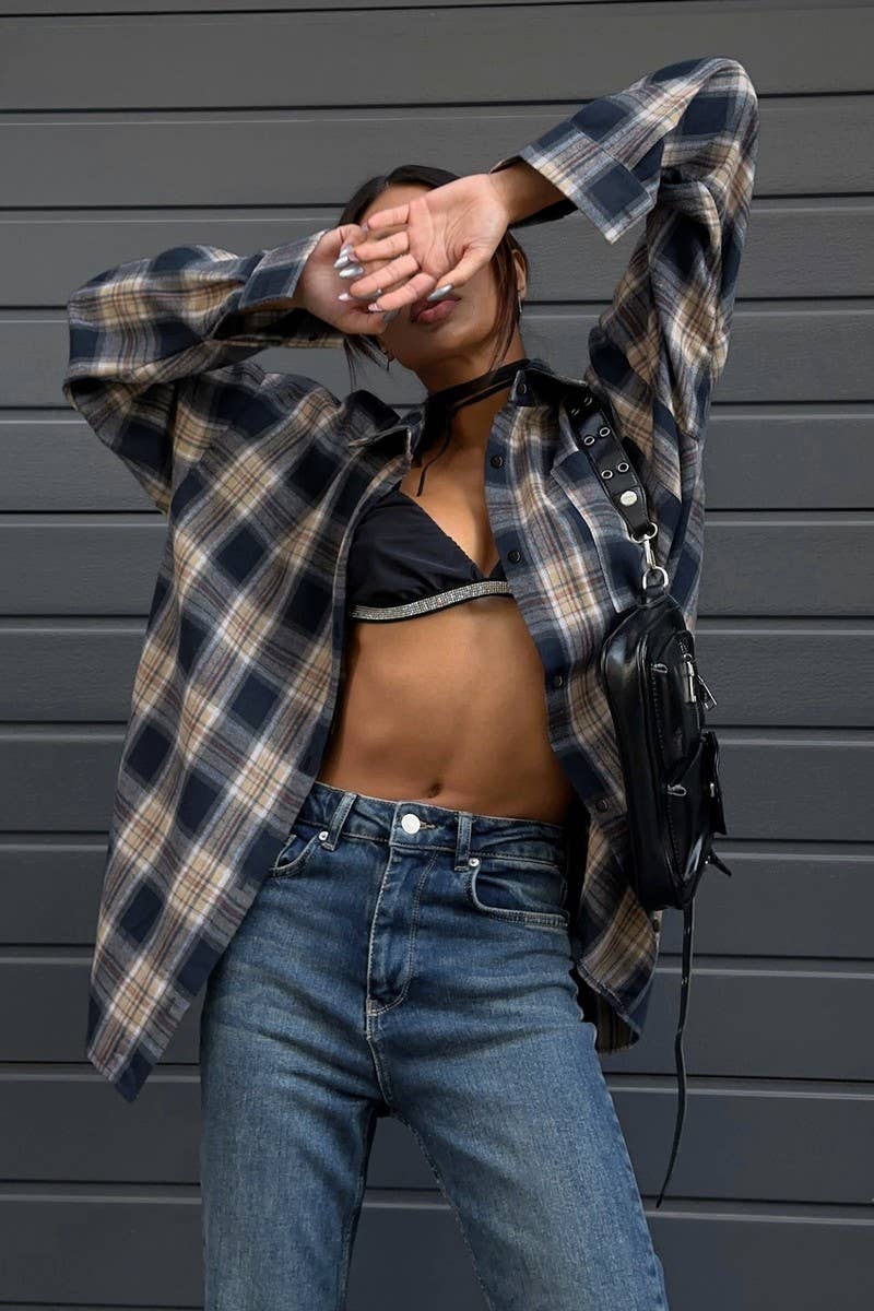 RETRO PLAID COMMUTER LOOSE LONG-SLEEVED SHIRT