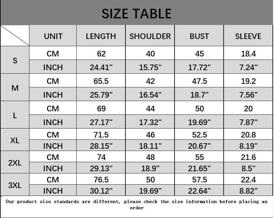 SIZES : S,M,L,XL,XXL,XXXL