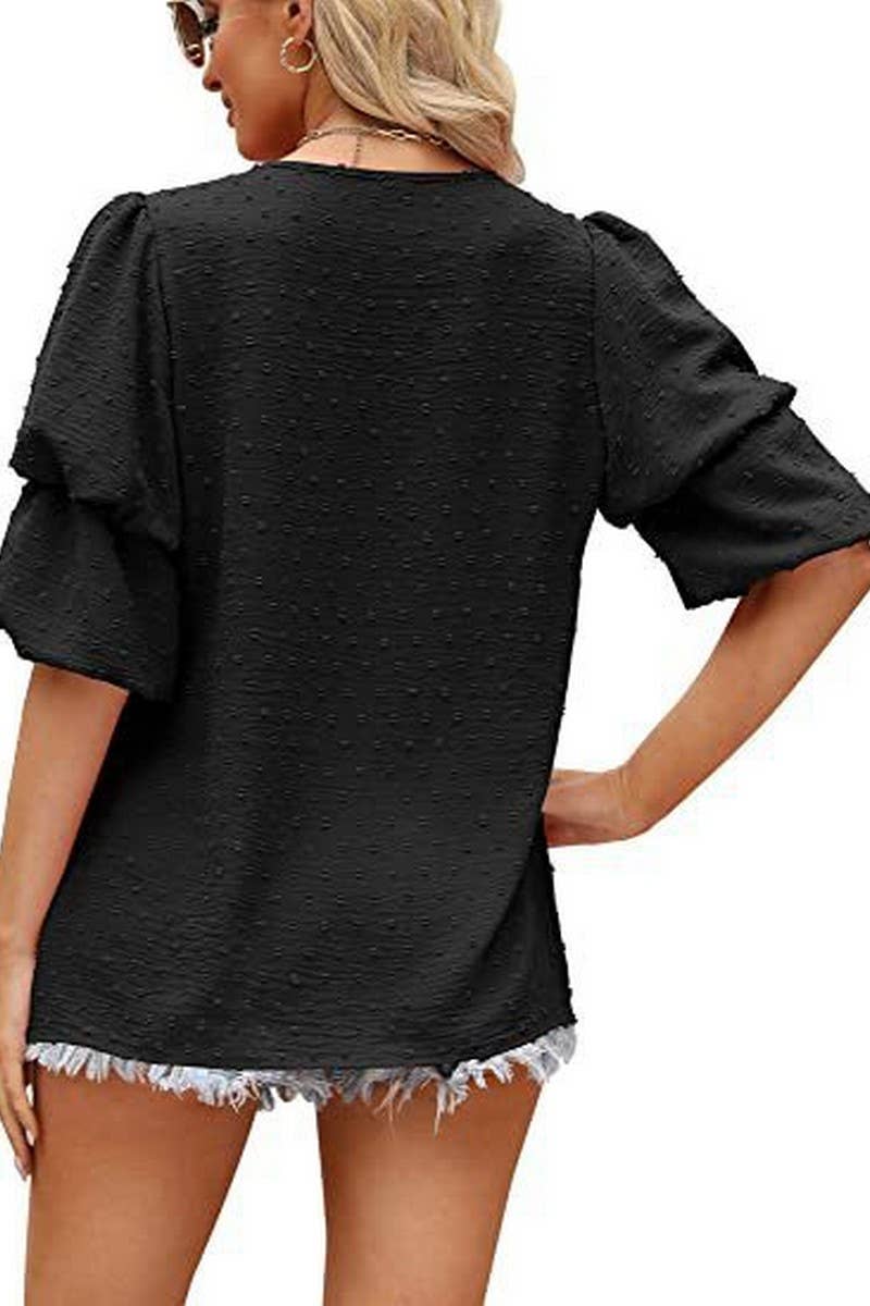 V-NECK LANTERN SLEEVE DOT CHIFFON TOP