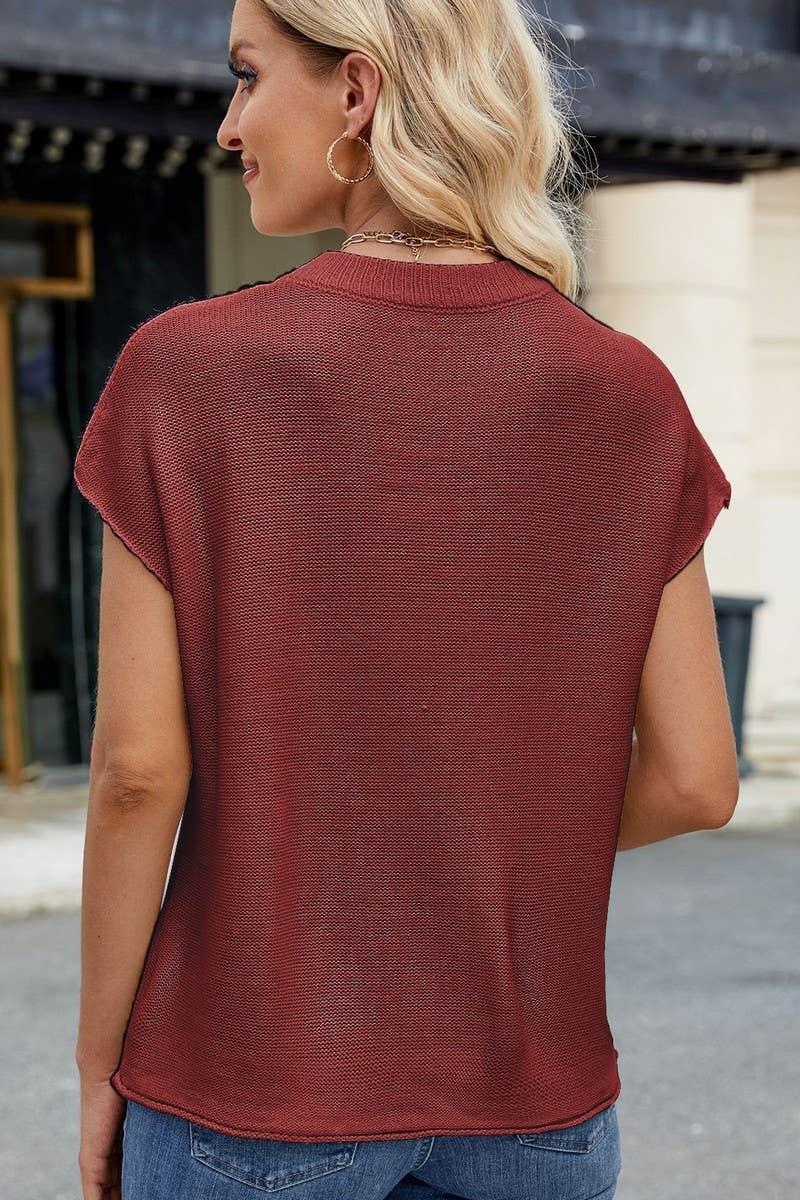 CREW NECK SHORT-SLEEVED KNITTED VEST PULLOVER