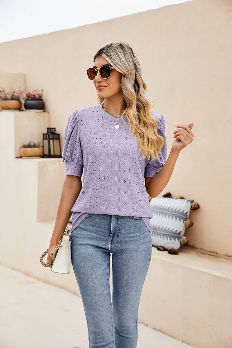 HOLLOW PUFF SLEEVES SHORT SLEEVED BLOUSE TOP