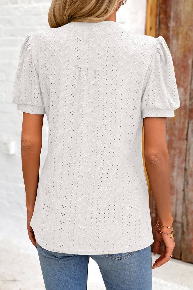 SOLID COLOR V NECK LOOSE SHORT SLEEVED TOP