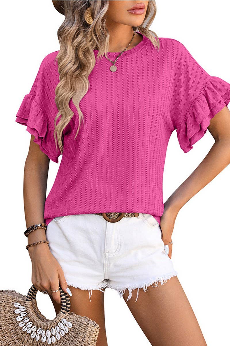 ROUND NECK SHORT SLEEVE SHIRT WITH LOTUS SLEEVES