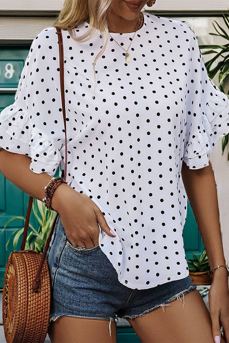 POLKA DOT BAT SLEEVE RUFFLE SHIRT