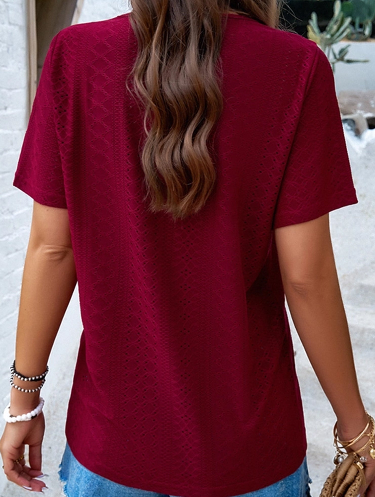 V-neck cut flatters neckline and collarbone