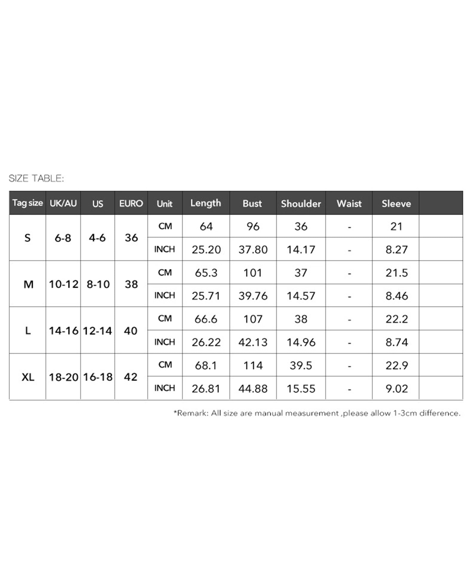 Size | Bust | Shoulder | Length |