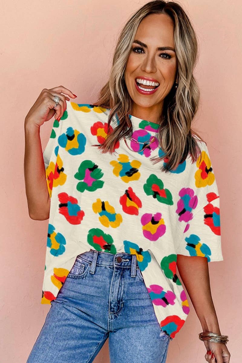 CASUAL CREW-NECK MID-SLEEVE COLOR MATCHING TOP