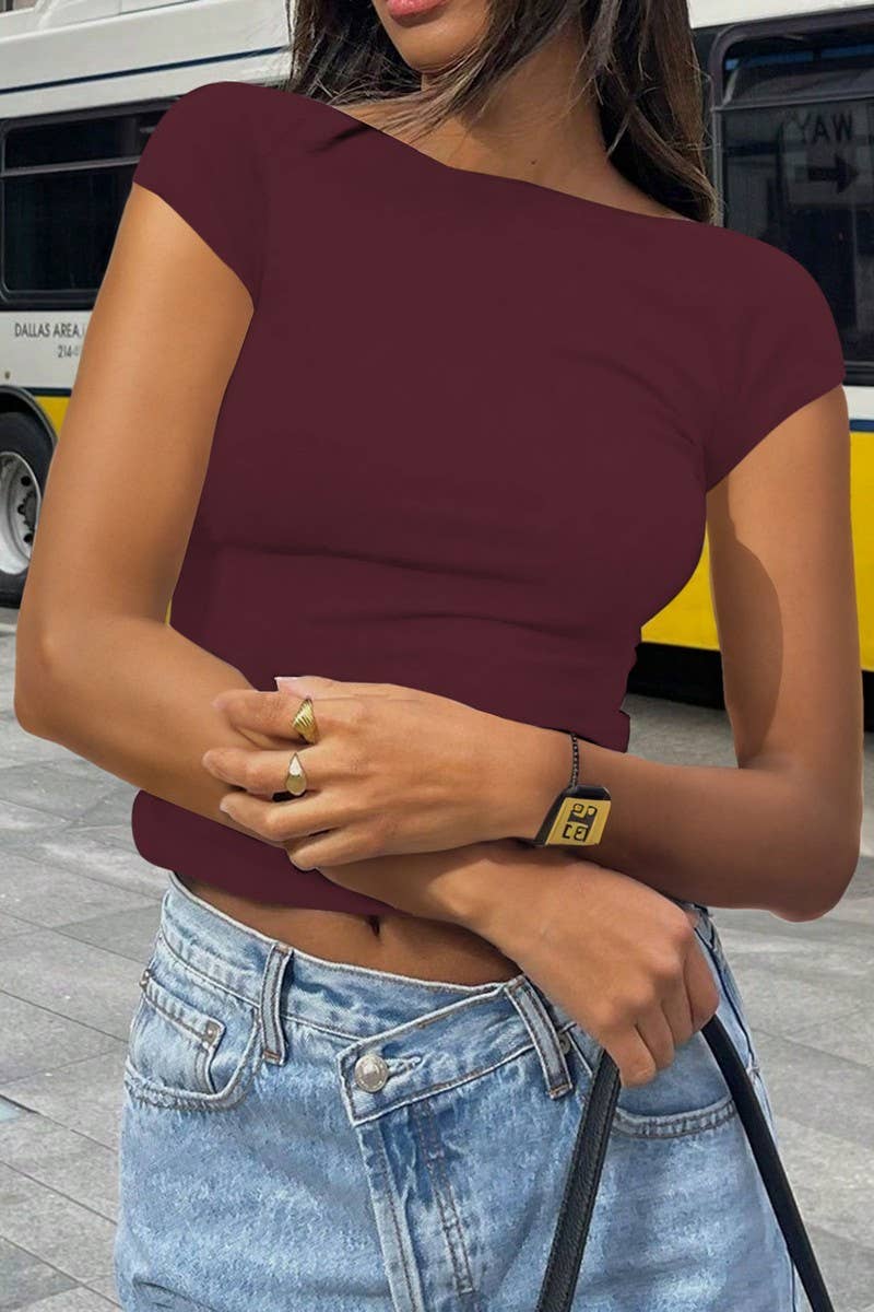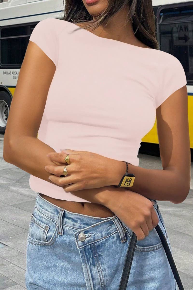 ROUND NECK OPEN BACK SHORT SLEEVE TOP