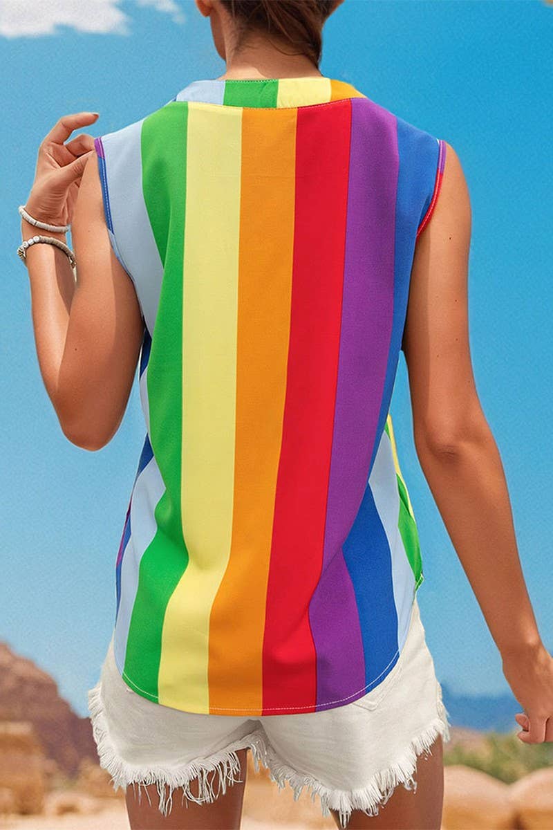 2025 CASUAL BASIC COLOR STRIPED V-NECK SHIRT