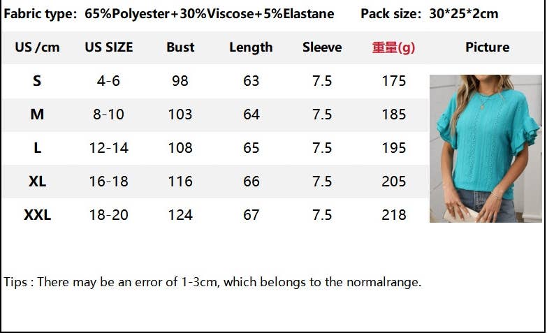 ROUND NECK RUFFLE SLEEVE SHORT SLEEVE T-SHIRT TOP