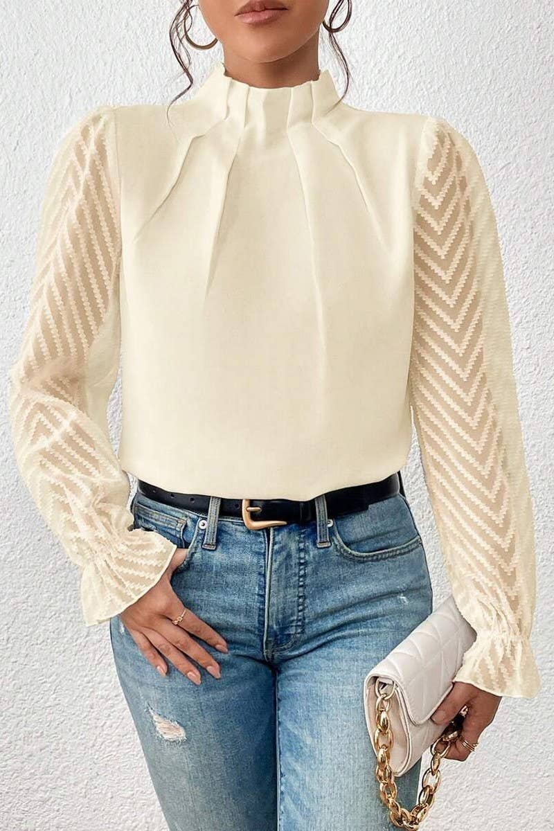SPRING AND AUTUMN HALF TURTLENECK CHIFFON TOP