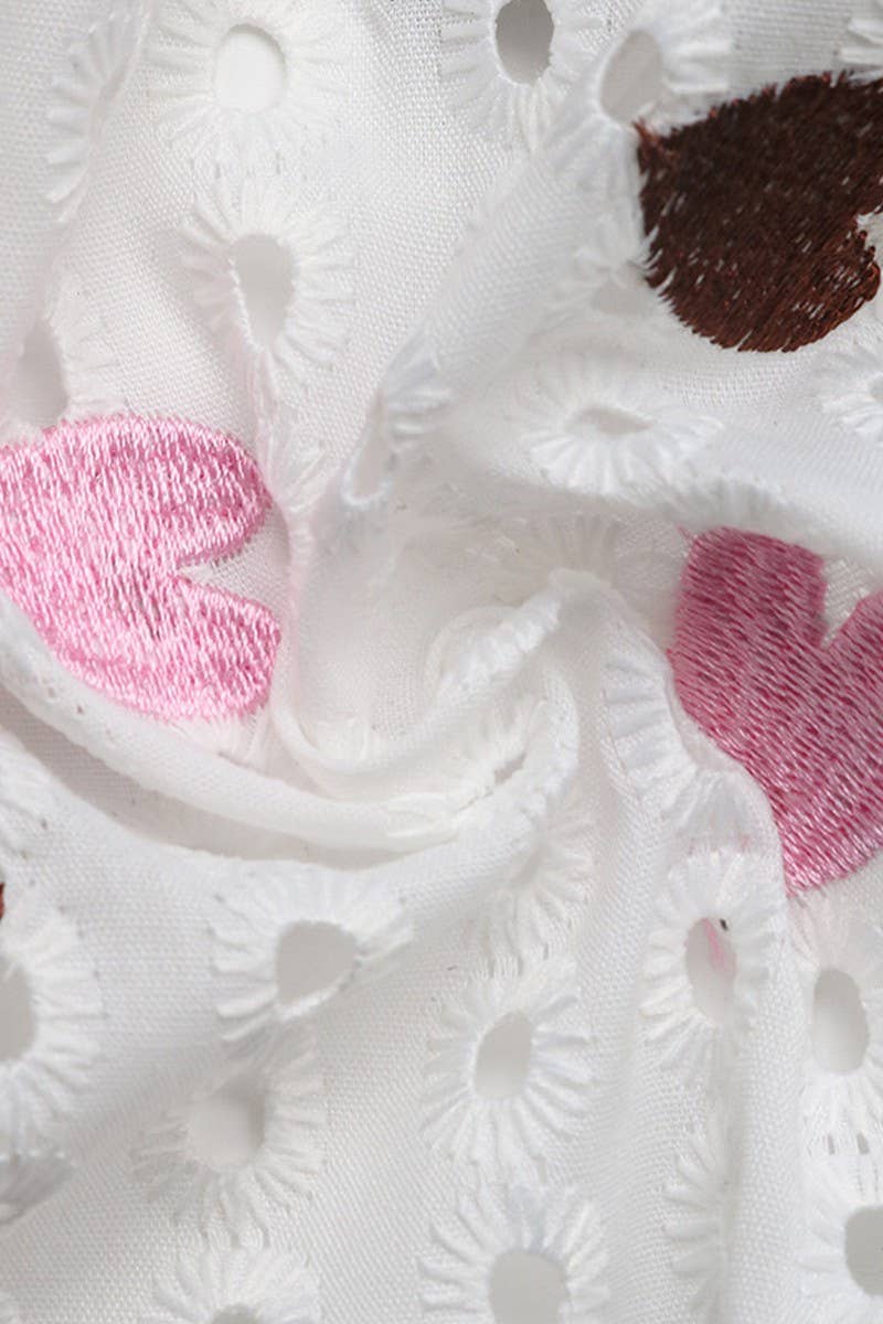 SUMMER CASUAL HEART NECKLINE PUFF SLEEVE TOP