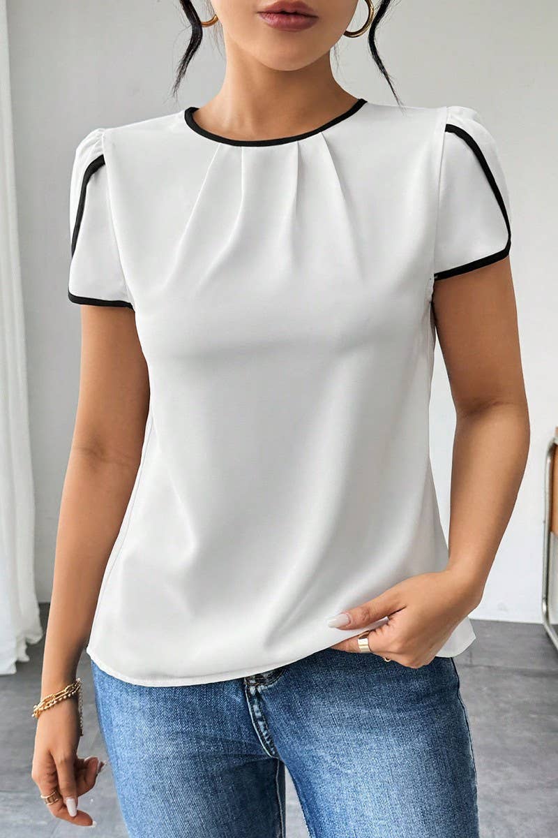 SOLID COLOR CREW NECK LOOSE PULLOVER TOP