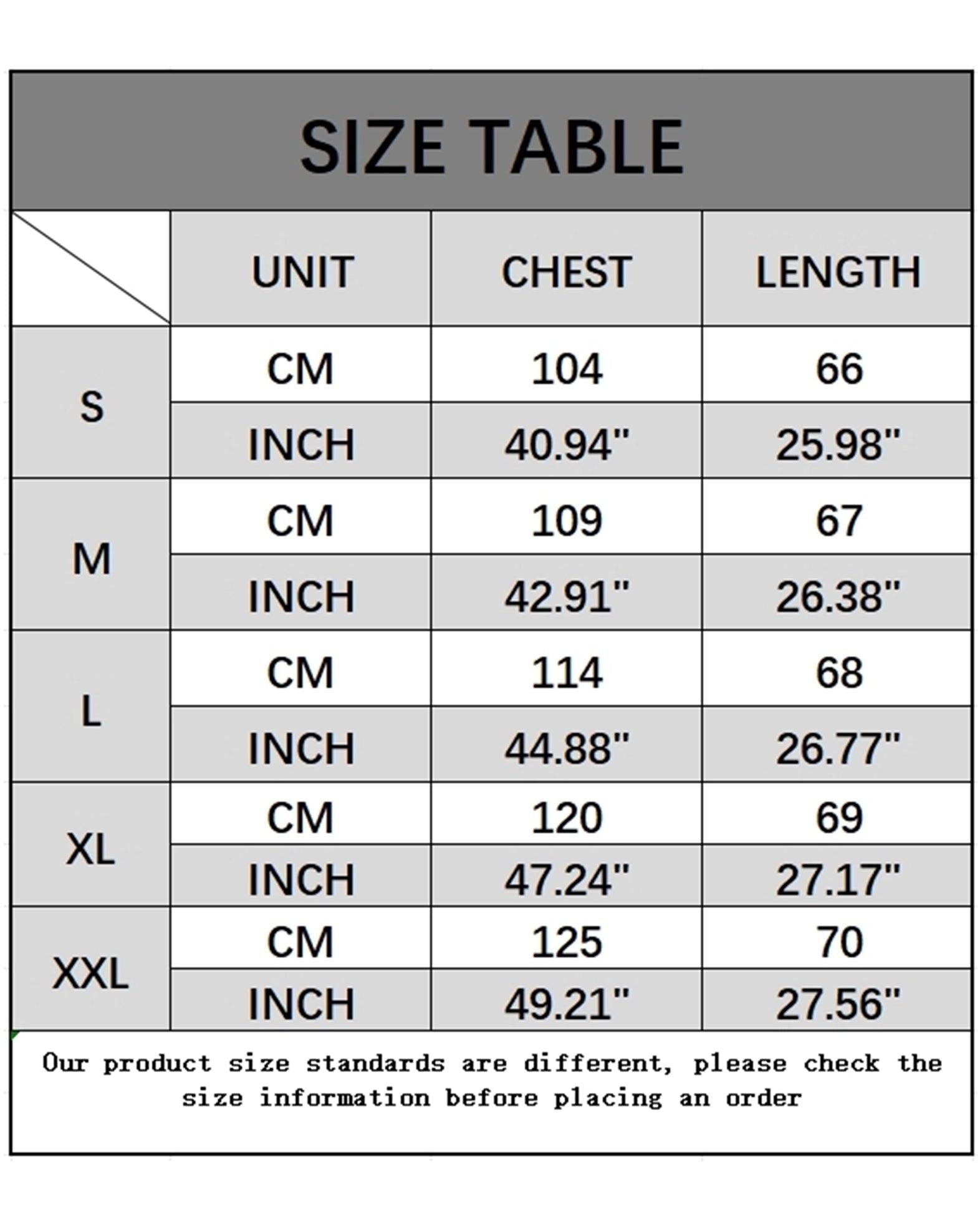 Sizes: S, M, L, XL, XXL