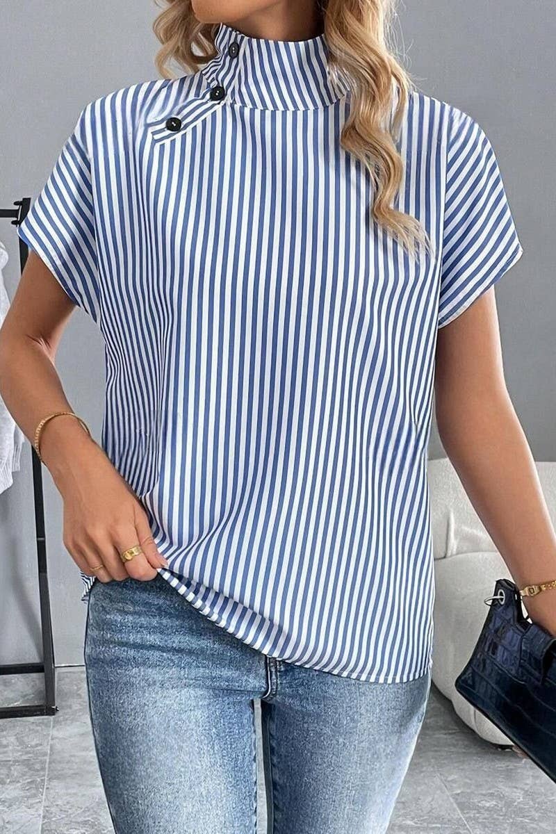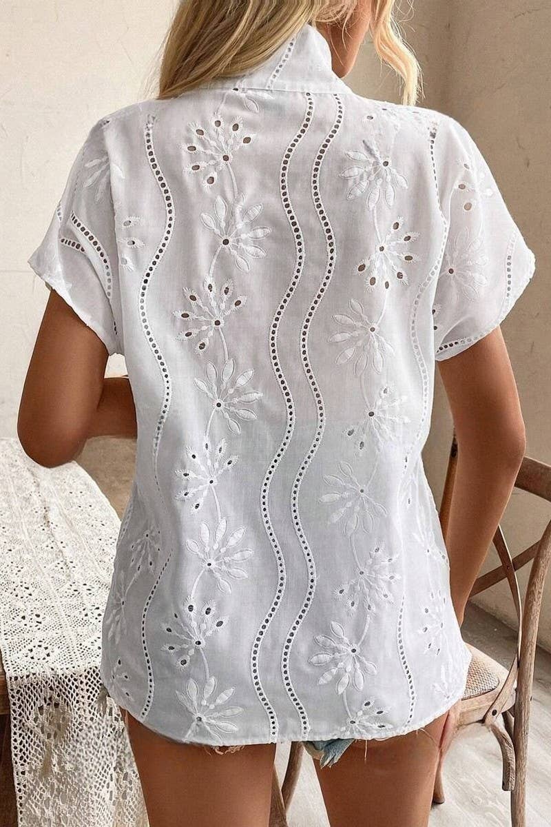 SHORT SLEEVE HOLLOW OUT STAND COLLAR BUTTON SHIRT