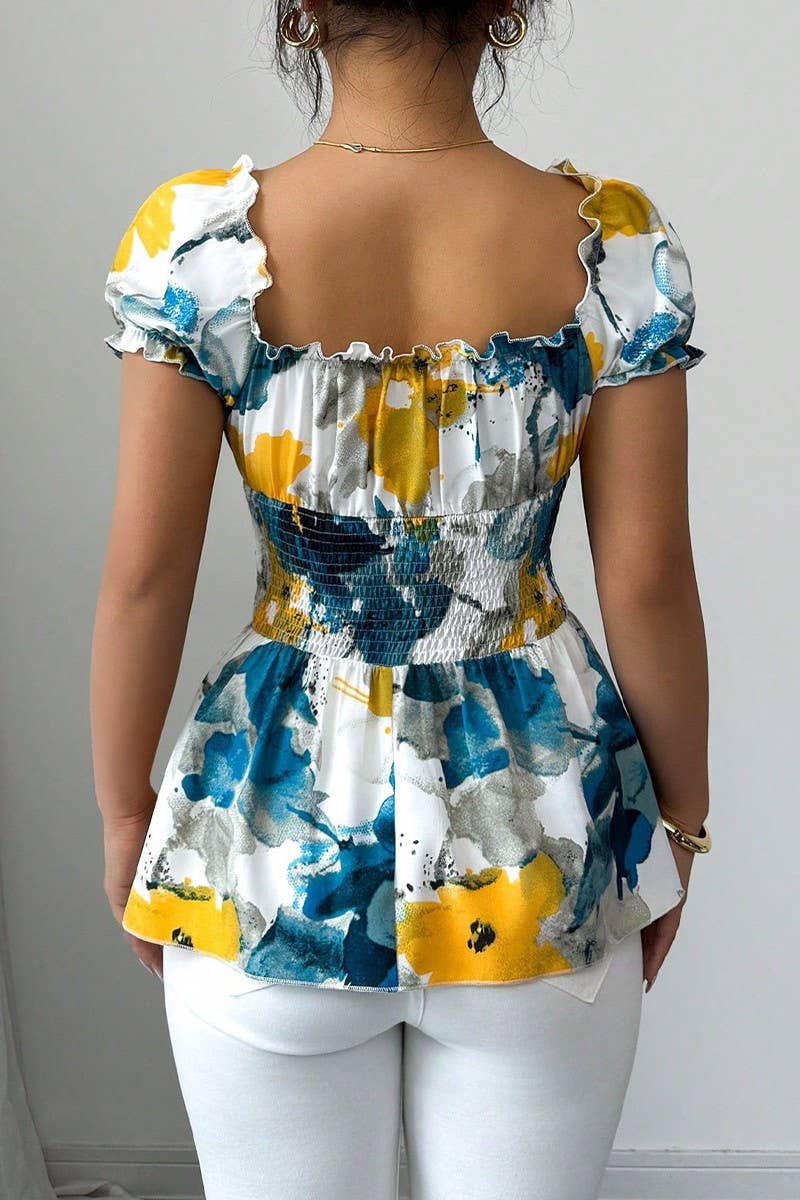 SUMMER V-NECK TIE-DYE SLIM-FIT PULLOVER TOP