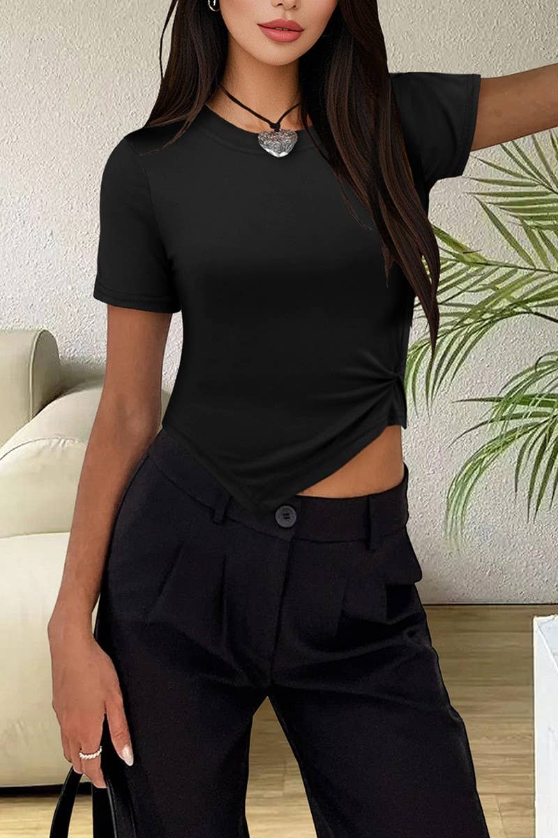 RIBBED KNIT SLIM FIT CROP SHORT SLEEVE TOP