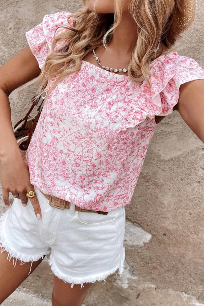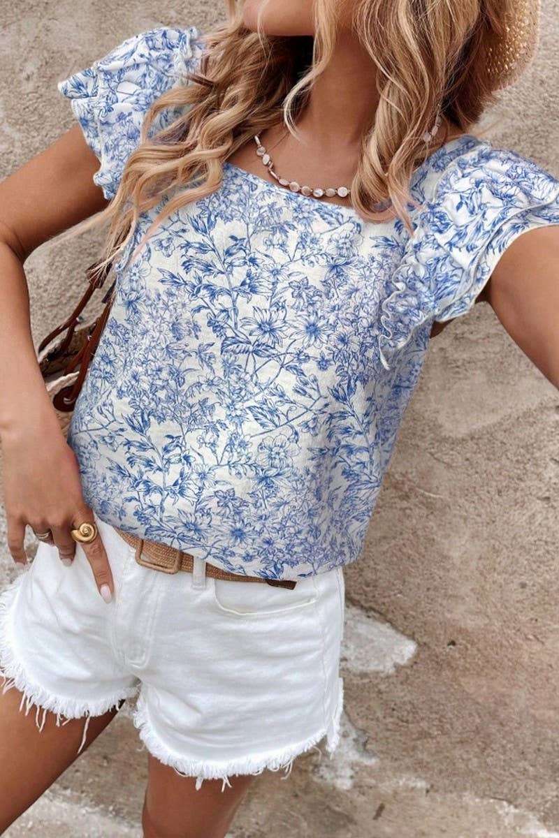 PRINTED BOW BACK LAYERED RUFFLE SLEEVE SHIRT
