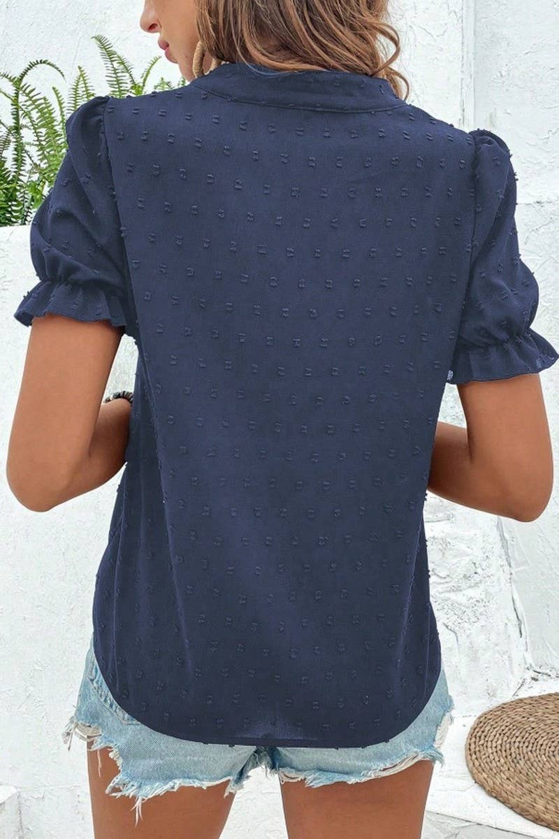 V-NECK FLORAL EMBROIDERED PUFF SLEEVE CHIFFON TOP