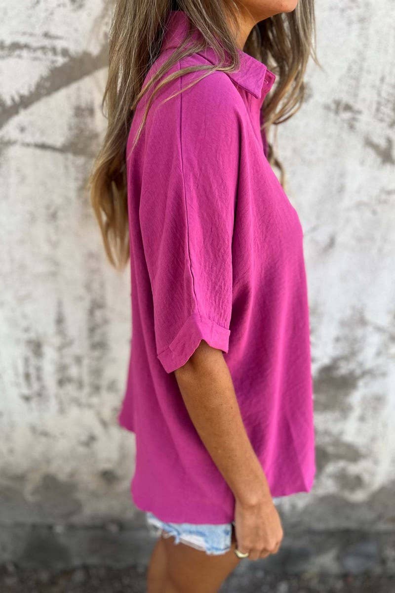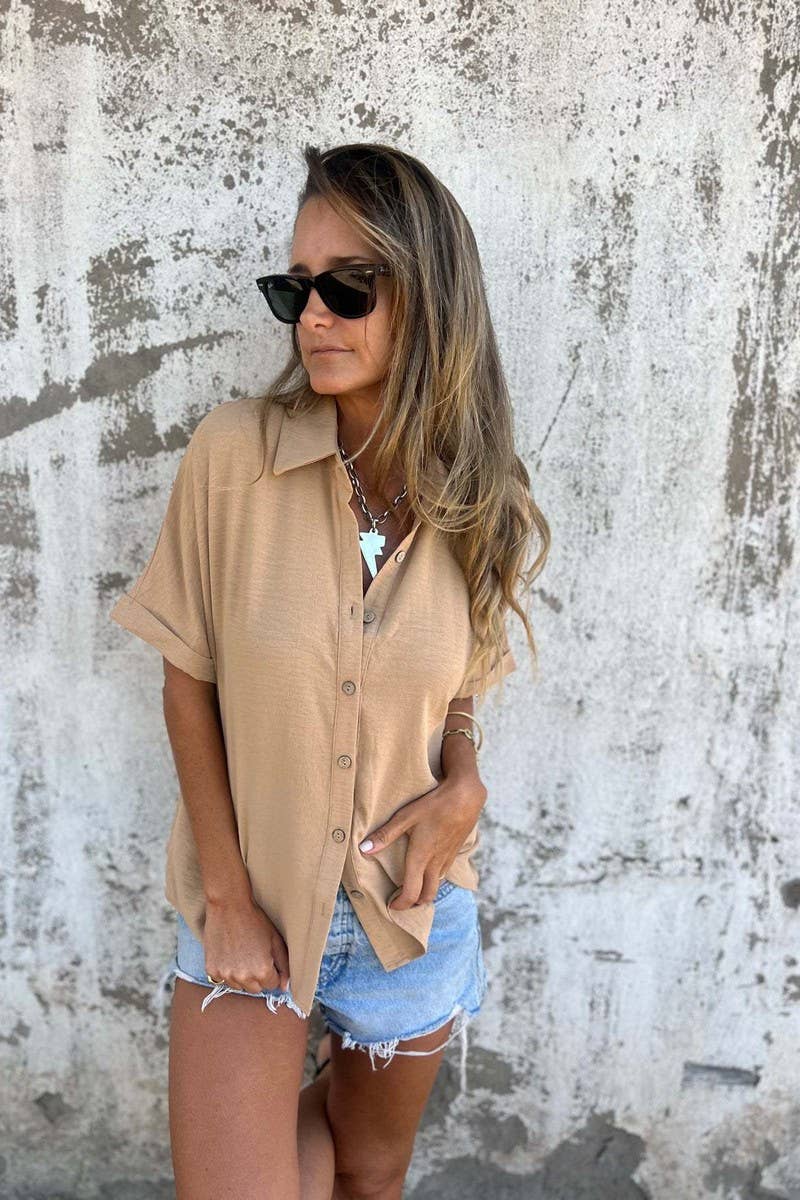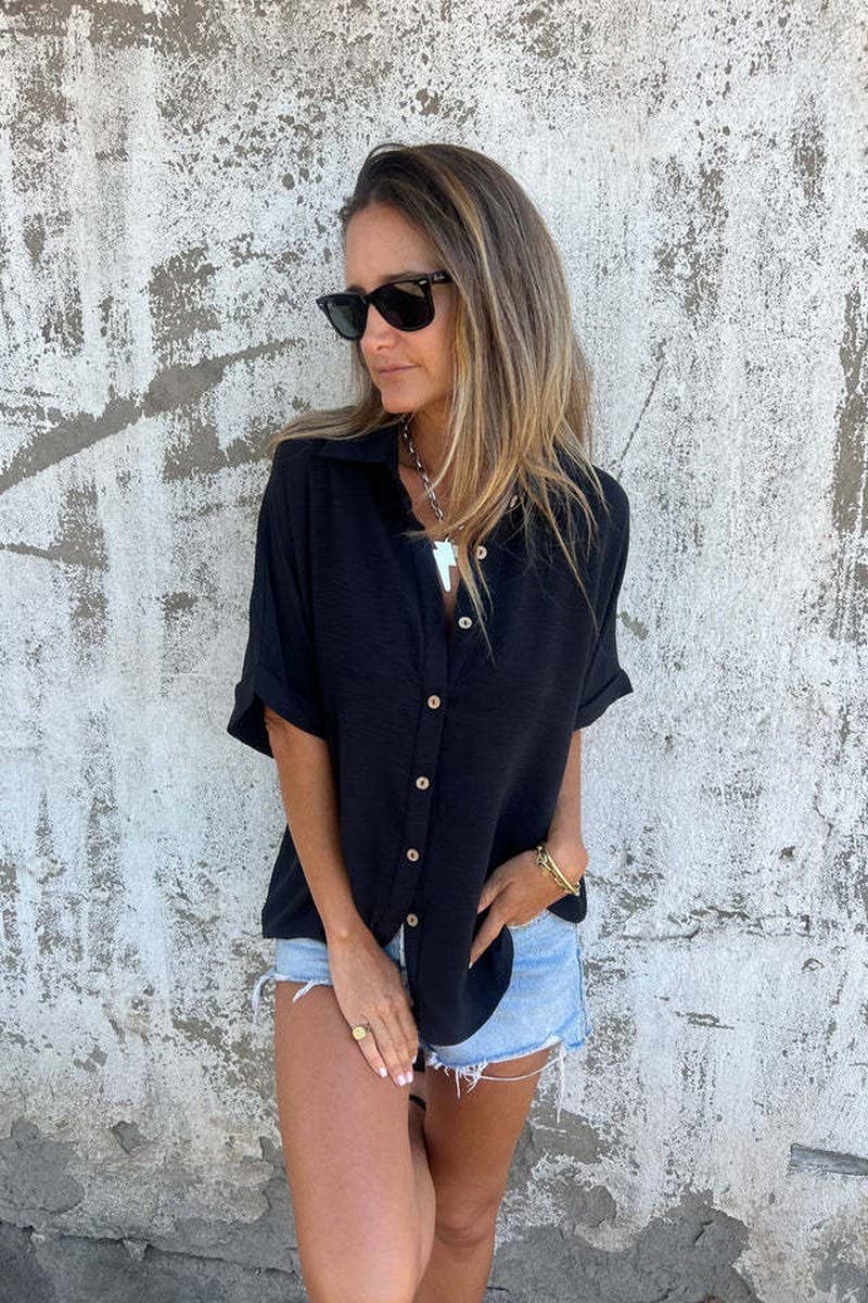 SOLID CASUAL COLLARED BUTTON SHORT SLEEVE SHIRT