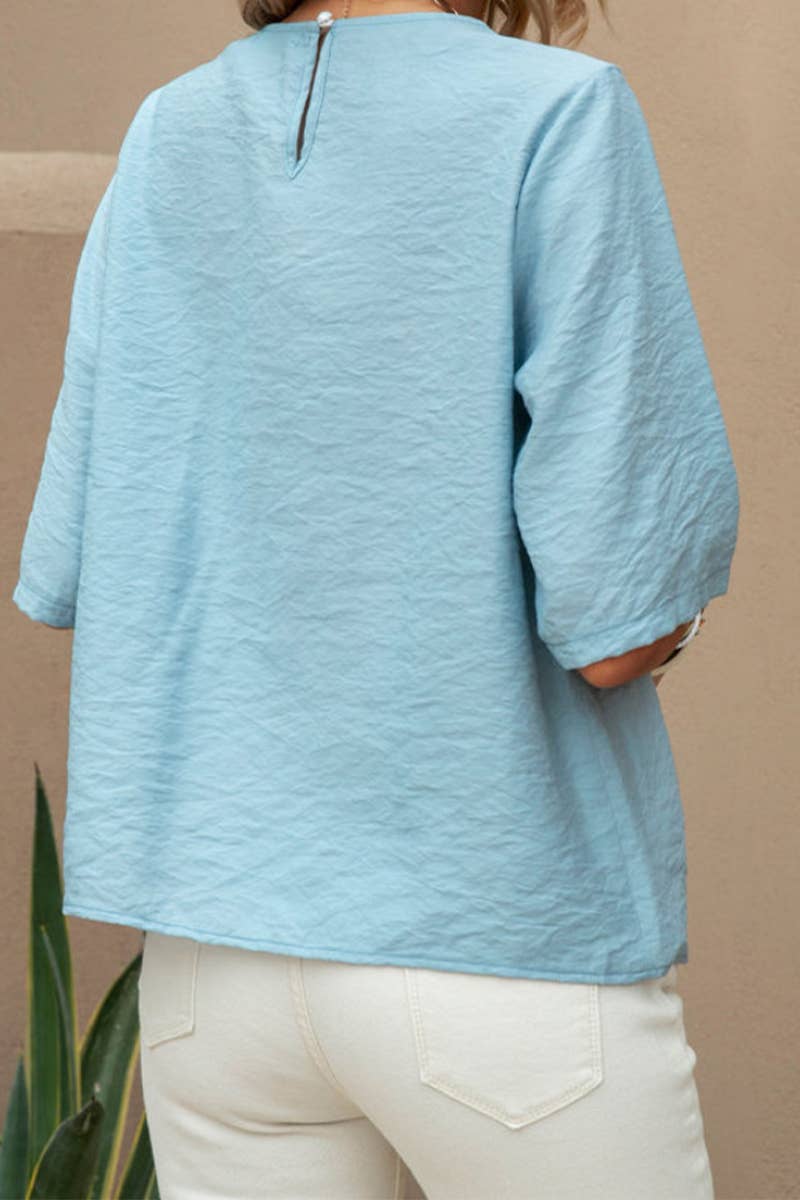 LACE HOLLOW CASUAL SOLID COLOR MID-SLEEVE SHIRT