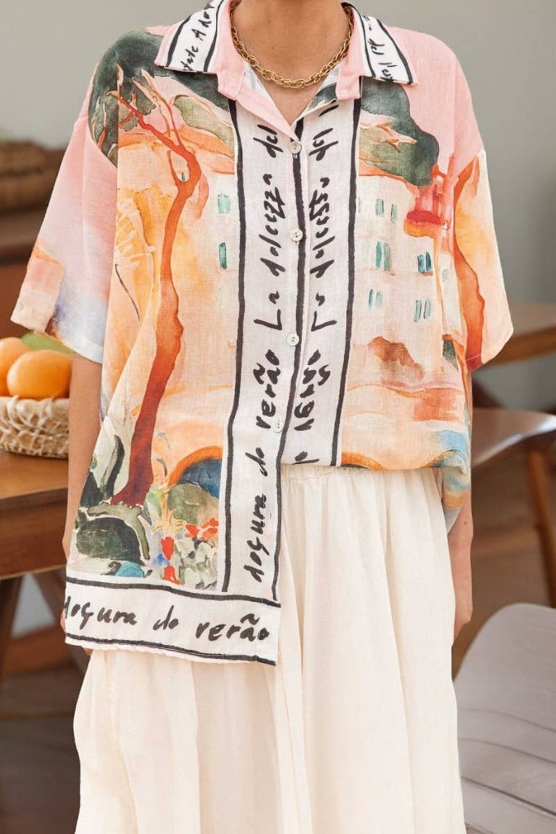 GRAFFITI PRINT FIT VACATION SHORT SLEEVE SHIRT