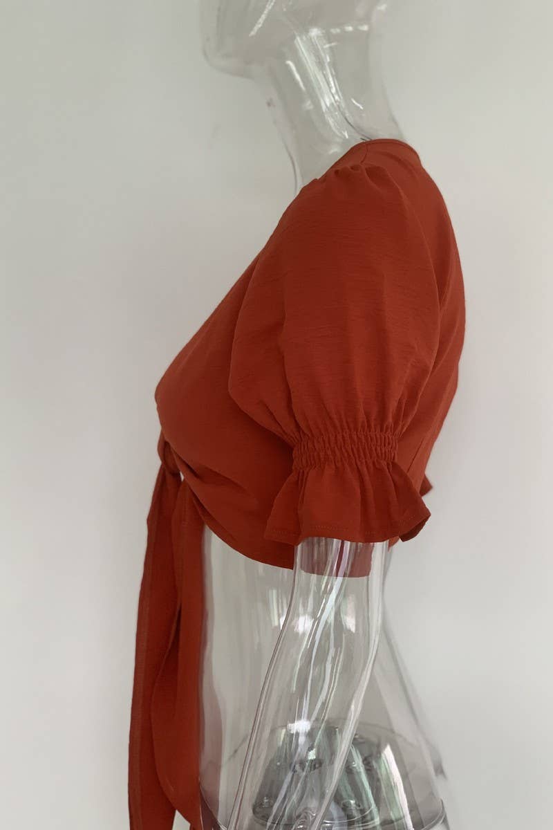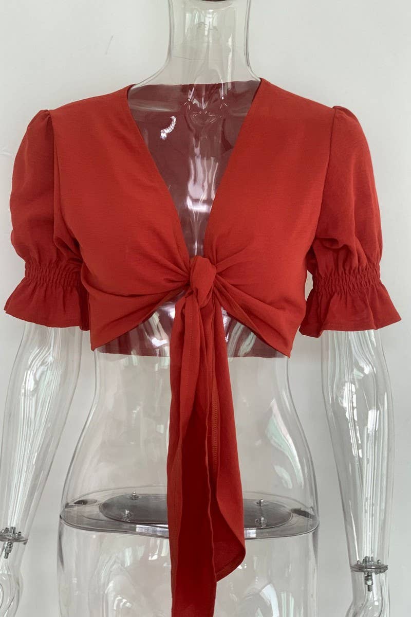 SOLID COLOR LACE-UP CARDIGAN CROPPED TOP SHIRT