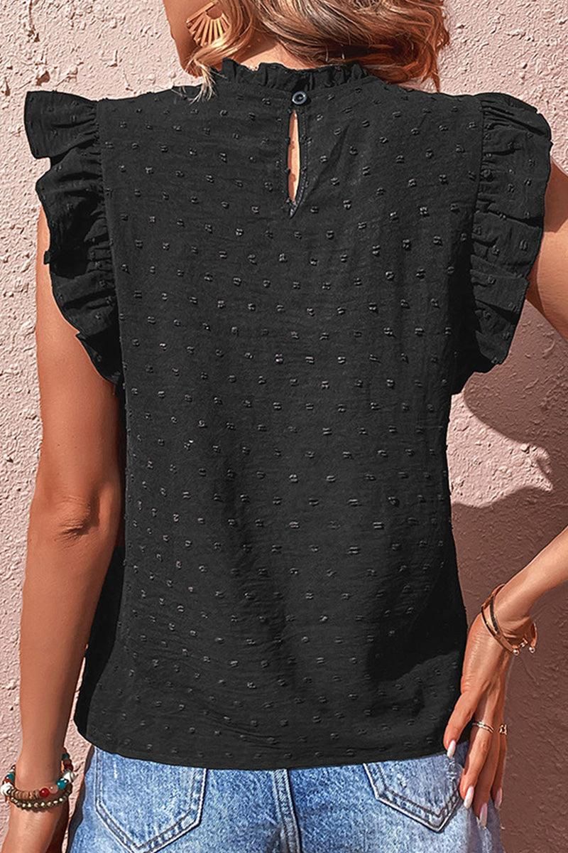 RUFFLED MESH HIGH NECK ANGEL WINS TUNIC TOP
