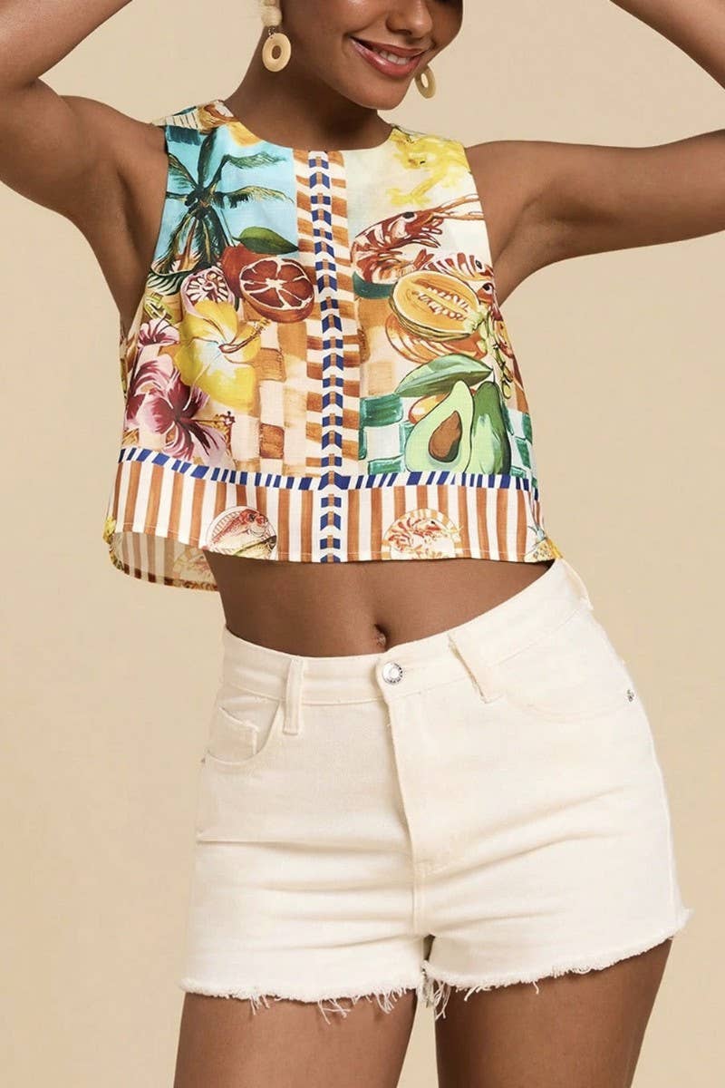 RESORT PRINT SLEEVELESS CROPPED SLIM TANK TOP