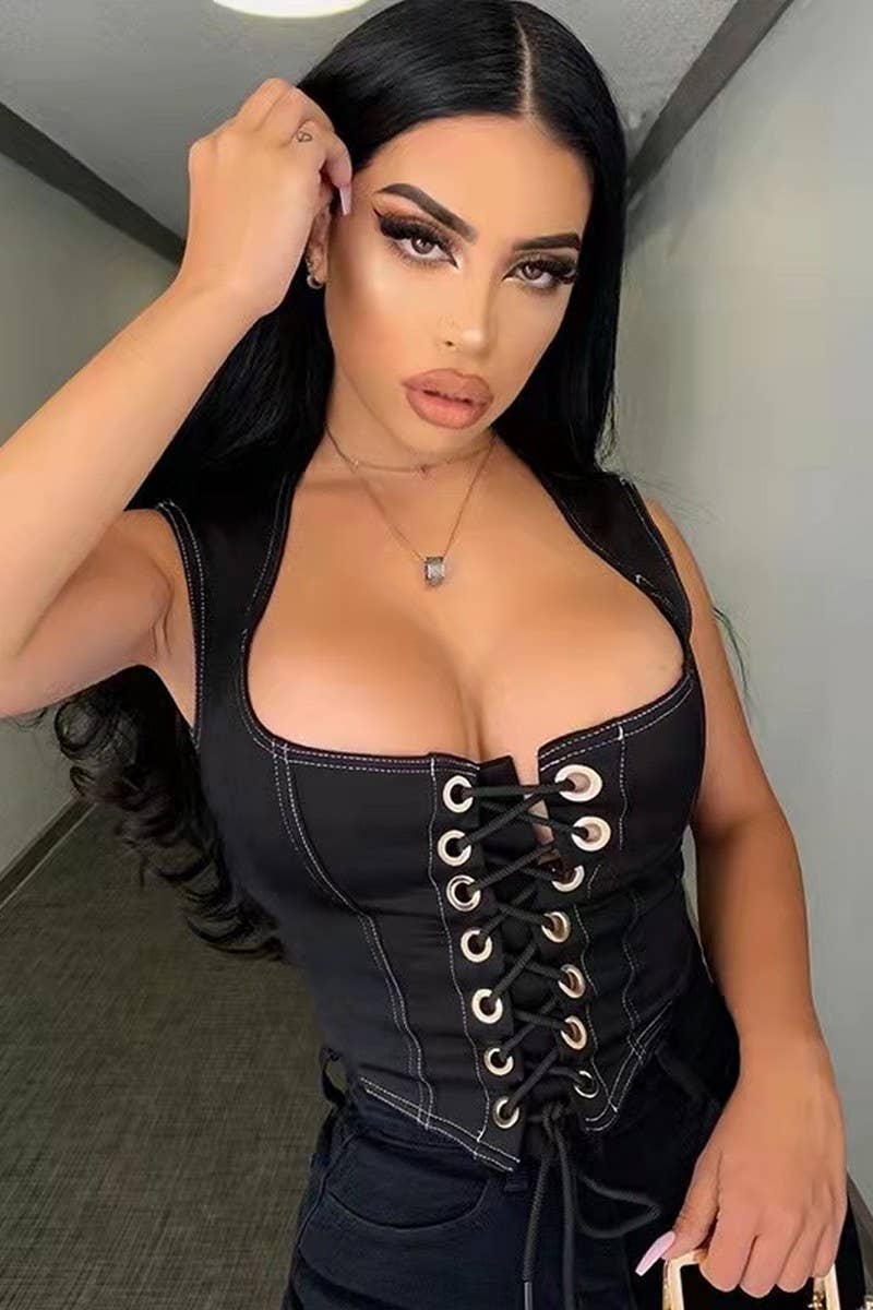 SEXY DENIM LACE UP FITTED TOP