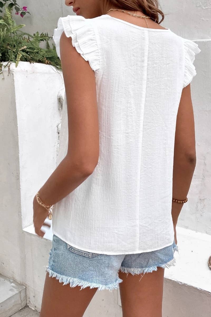 V-NECK LACE PATCHWORK RUFFLED CASUAL TOP