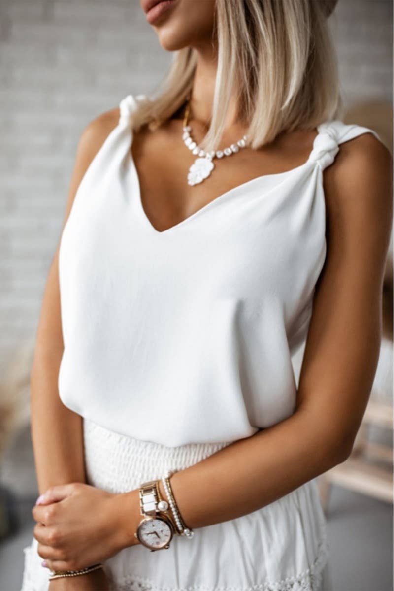 SOLID COLOR V-NECK SLEEVELESS KINK HALTER TOP