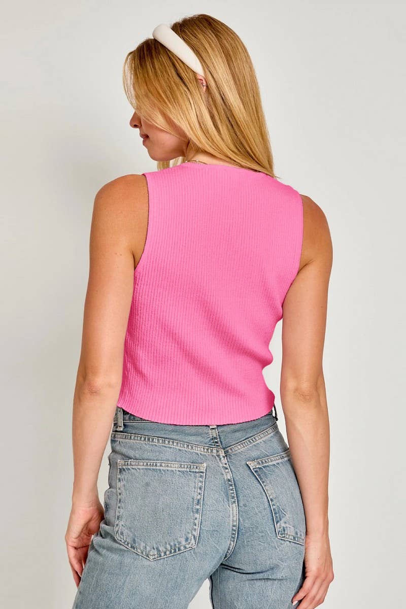 BOW-DECORATED HOLLOW CREW NECK SLIM FIT VEST TOP