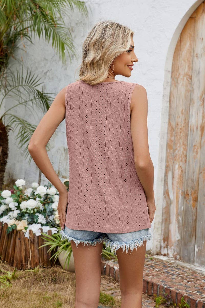 ROUND NECK CUTOUT PLEATED SLEEVELESS T-SHIRT TOP